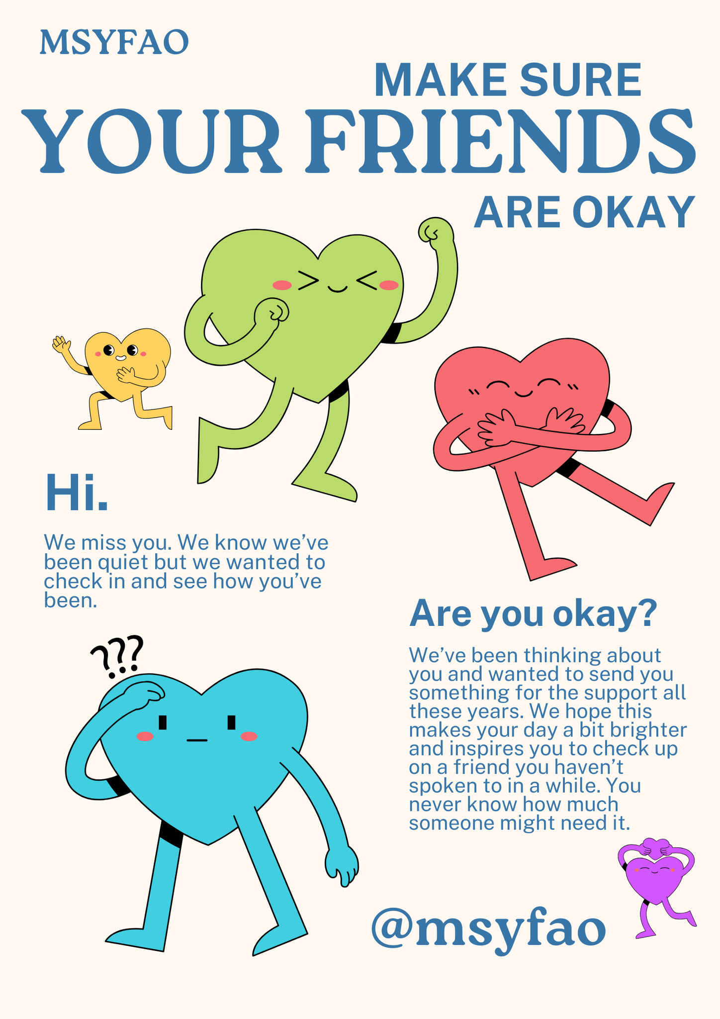 You might already know this, but I dropped a song this May called “OK.” There’s a line in the chorus that goes, “I know it’s a lot sometimes, we’ll get you through it.” The wording is calm and conversational, but the context is a bit darker. If you know the song, you know what I mean. When I’m working on a song it either feels really fun or really meaningful — rarely does a song hit both of those marks, but “OK” does. And it aligns perfectly with Make Sure Your Friends Are Okay’s purpose.